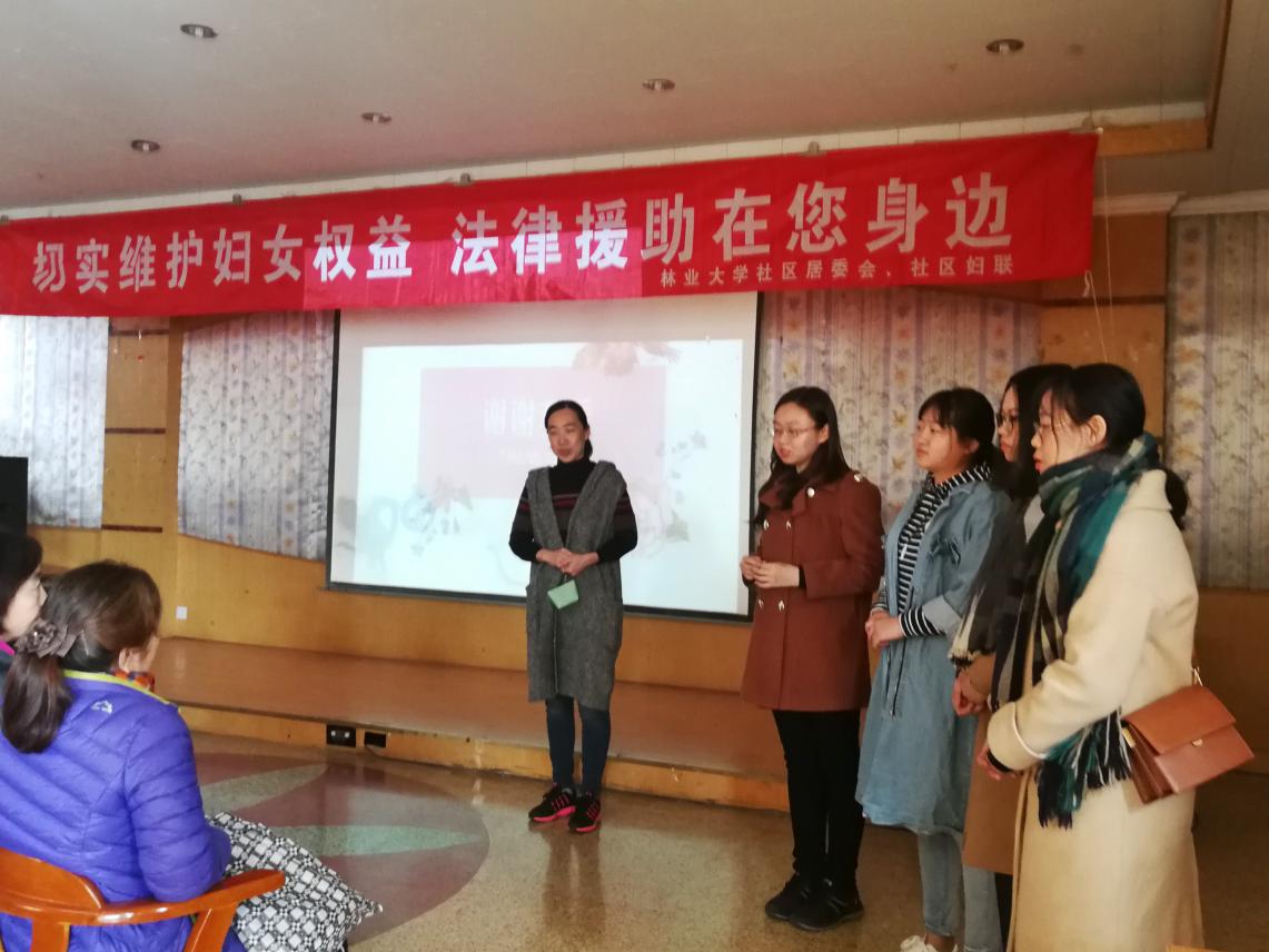 3月10日上午9点,林大社区妇联与北京林业大学法律援助中心的志愿者们一起开展了“建设法治中国首善之区·巾帼在行动”妇女维权宣讲活动。