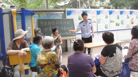 活动现场,工作人员向前来参与活动的居民耐心、细致地介绍了邪教组织的特征,社区民警任建军警官向大家讲解了邪教的危害,并教给大家如何来抵制邪教的诱惑,自觉做到不参加邪教,反对邪教,抵制邪教。活动过程中工作人员向居民发放了“防邪教知识进家庭”宣传材料,并组织前来活动的居民填写了防邪知识答题。