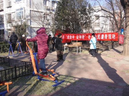开展冬季健身运动,促进居民身心健康为了丰富社区居民的业余文化生活,倡导健康生活新方式,提高社区居民的身体素质,推动社区精神文明建设,我社区居委会组织居民于12月9日在社区健身场地开展了“迎新年 促和谐”冬季全民健身活动。