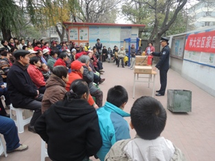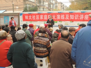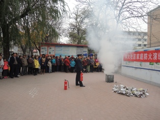 消防安全知识竞赛环节结束后,由学校保卫处保安人员为大家详细讲解了灭火器的使用方法及存放要求,对火灾发生时逃生的方向、手段及如何正确使用灭火器做了演示,列举了生活中可能有的错误逃生方法,让居民们掌握了火灾来临时如何正确逃生的方法。