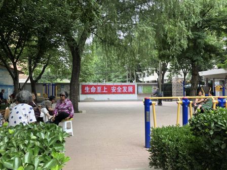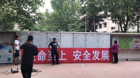 “生命至上 安全发展”。硕大的红字宣传版醒目地安装在西社区文体广场的墙壁上,时刻警示过往居民提高安全意识。